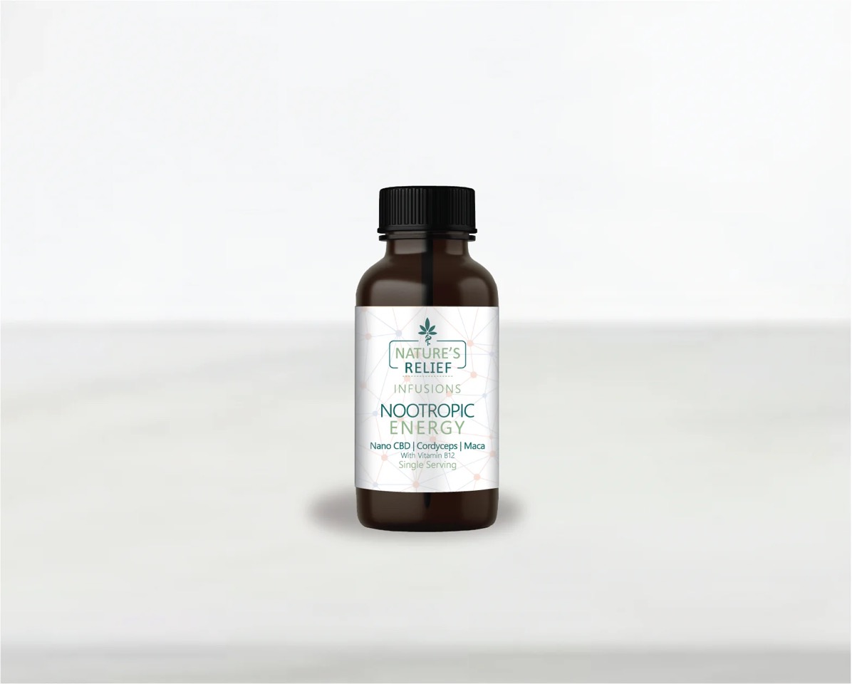 Nature’s Relief Nootropic Energy Shot is designed to naturally elevate your energy levels, enhance endurance, and improve performance. This powerful formula combines CBD, Maca, Cordyceps mushroom, and Vitamin B12 to support optimal energy throughout the day.